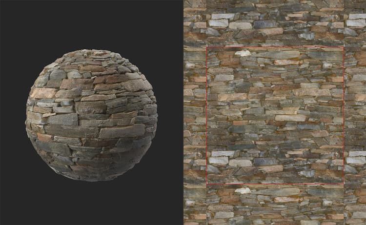 The left and right semi-circles match each other to ensure the material tiles horizontally, and the top and bottom semi-circles ensure the material tiles vertically. The blue square in the center removes hides all the remaining seams to create a fully tileable material with no seams.