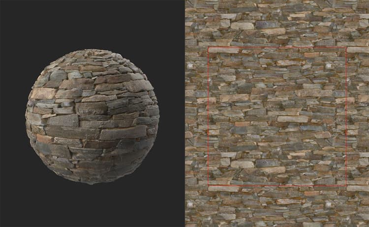 - The red lines show the borders of the bottom layer. The bottom layer is offset by 50% of the UV space on the X and Y axes, so the red lines are tiling seams that need to be covered.