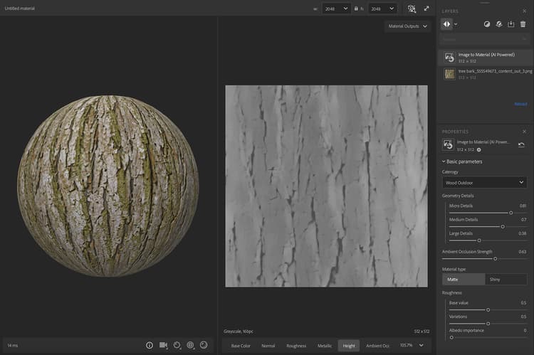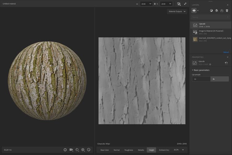 In the image above, a low resolution image is processed by the Image to Material (AI Powered).