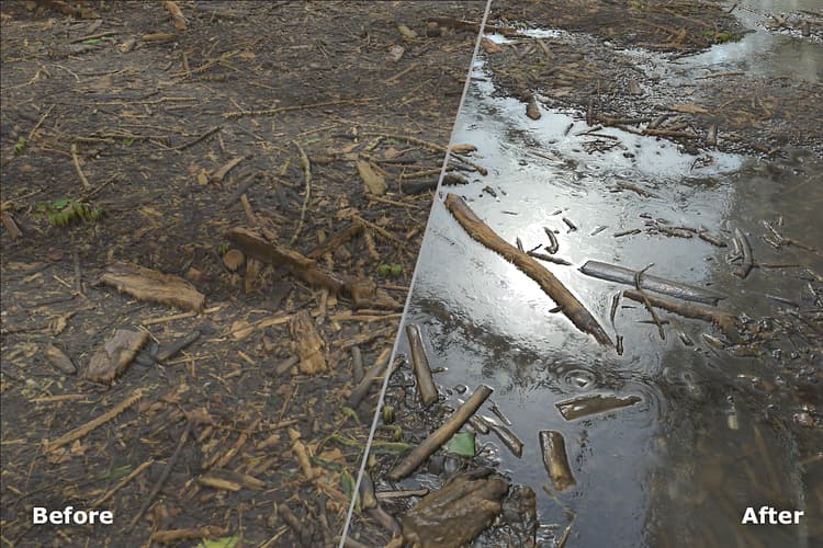Add dirt to the top of the water by modifying the roughness map slightly. The Dirt section only appears if this parameter is enabled. - Custom Mask: toggle