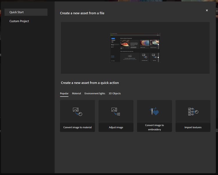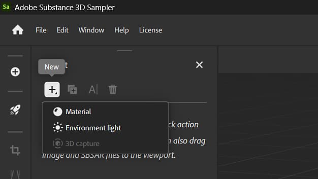 Sampler can use external resources like images and Substance files to modify your project. Use any of the following options to import a file to your project: