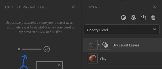The Exposed Parameters panel holds the parameters exposed from the Properties panel.