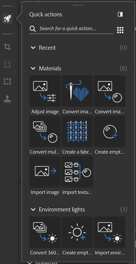 Quick actions is a system that allows to create an asset or add many layers in the stack in few clicks. Use Quick actions to create an asset, create a project, or to add the layers you need to your existing stack.