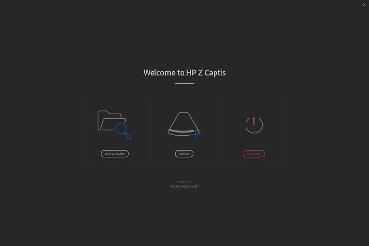 After clicking on HP Z Captis, a dedicated window opens with 3 options:
