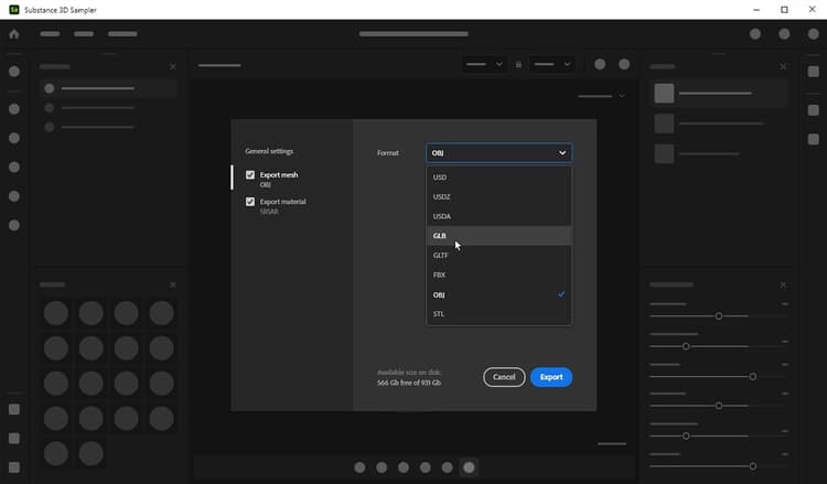 - [Export] Dedicated settings and UI depending on the asset type (material, environment light, mesh)