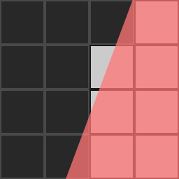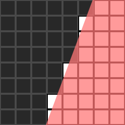 In the following images the geometry is the red overlay. The baker will mark a pixel as full if more than half of its surface is covered by the geometry (white squares are full pixels and black squares are empty pixels). On the right image the pixel grid is double the resolution which allows more accurate representation of the geometry.