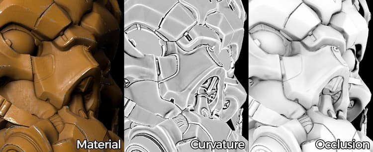 Substance software generate textures and these textures can be enhanced by using information related to the mesh geometry.