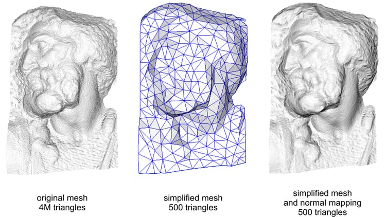 (Credits: [Paolo Cignoni](https://commons.wikimedia.org/wiki/File:Normal_map_example.png) - [CC BY-SA 1.0](https://creativecommons.org/licenses/by-sa/1.0))