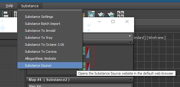 In the Substance menu at the top of the 3ds max UI, choose Substance Source.