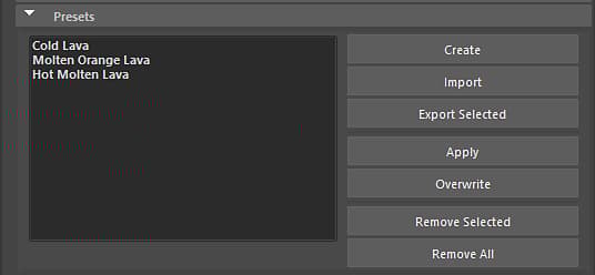 In the Presets section, you can fully manage embedded presets found in the Substance sbsar file or create new presets.