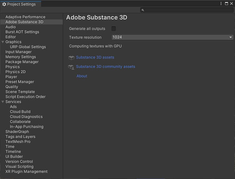 Substance 3D assets - Link to the Substance 3D Assets page.