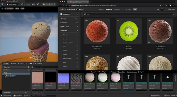 Access over 1000 high-quality tweakable and export-ready 4K materials with presets on the Substance 3D assets library. You can explore community-contributed assets in the community assets library.