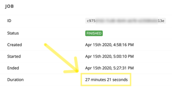 Locate the corresponding CloudConvert job in your CloudConvert dashboard's list of jobs and check the job's duration: