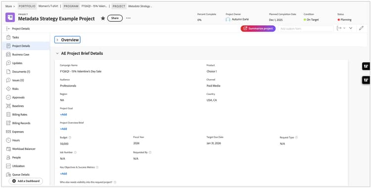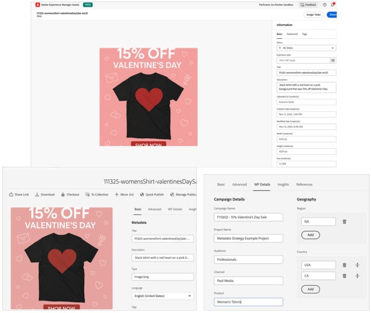 Metadata is the organizing principle behind digital asset management. In AEM, metadata lives with the asset and powers search, workflow, and policy. In Workfront, the metadata is collected via custom forms at the project, task, and document levels. A single source-of-truth per field and basic change control prevents rework downstream.