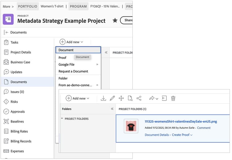 Demo step 6: Workfront Project documents (3 of 3)
