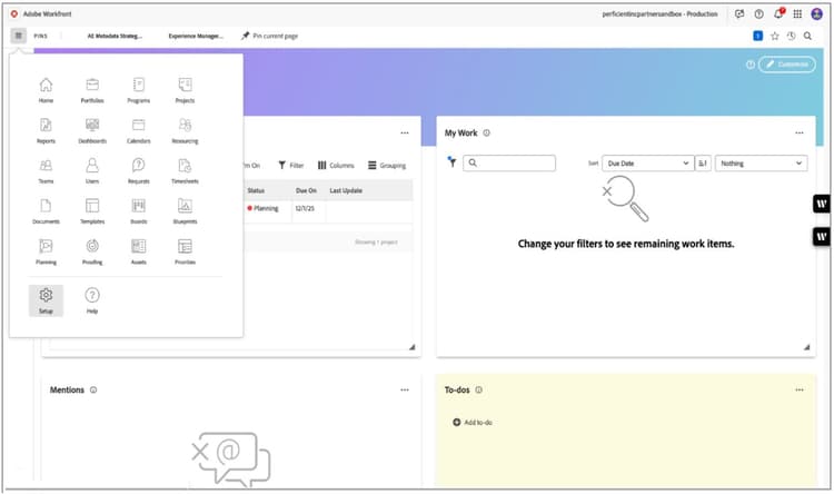 Navigate to the Homepage of your Workfront Instance.