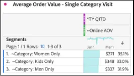 So, which retail categories - and user paths through those categories - result in the highest AOV? We can find out by combining segments with calculated metrics.