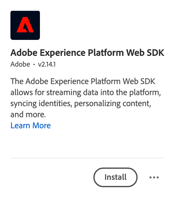Busque o desplácese hasta la extensión del SDK web de Adobe Experience Platform y seleccione Instalar para instalarla.