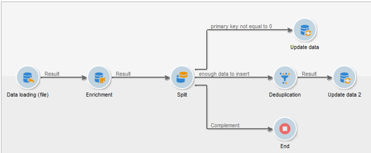 - Split: Cree filtros para procesar registros de formas diferentes, dependiendo de si se podrían reconciliar o no.