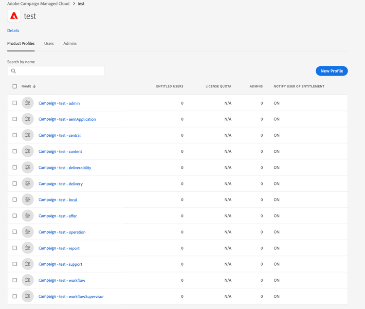 Para añadir un nuevo perfil de producto a Adobe, primero debe crearlo en la consola del cliente de Campaign y, a continuación, añadirlo en Admin Console.