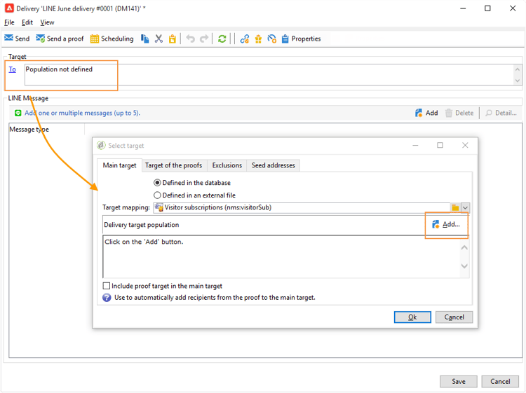 En la ventana de configuración de la entrega, seleccione la población objetivo.