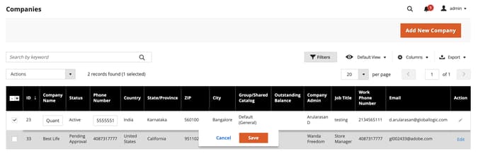 Busque la empresa en la cuadrícula y haga clic en Edit en la columna Action.
