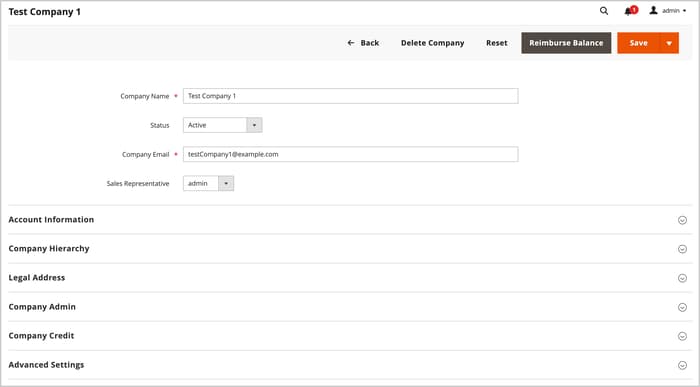 Una vez creada una compañía, los usuarios administradores con los permisos adecuados pueden utilizar la sección Company Hierarchy para crear una organización de compañía principal editando la compañía principal designada y asignando compañías relacionadas.