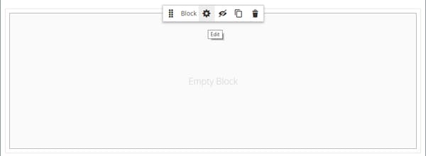 Pase el ratón sobre el contenedor de bloques vacío para ver la caja de herramientas y elija el icono Configuración (