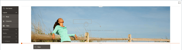 En el panel Page Builder bajo Layout, arrastre un nuevo(a)Row al escenario, justo debajo de la primera fila.