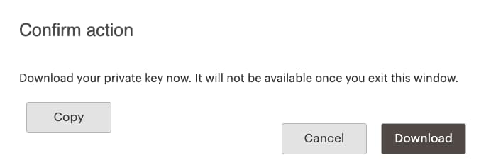 note warning WARNING Este cuadro de diálogo proporciona la única oportunidad que tiene para copiar o descargar las claves. -