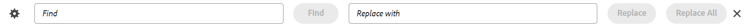 La búsqueda es instantánea, lo que significa que a medida que escribe la frase o palabra de búsqueda en el campo Buscar, el término se busca y selecciona inmediatamente en el tema. Del mismo modo, para reemplazar un texto en el tema, escribe el término de búsqueda y su reemplazo en los campos respectivos y selecciona el botón Reemplazar o Reemplazar todo.