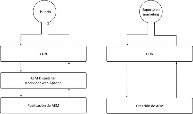El servicio de publicación de AEM utiliza una CDN administrada y AEM Dispatcher para optimizar las experiencias web de los usuarios finales.