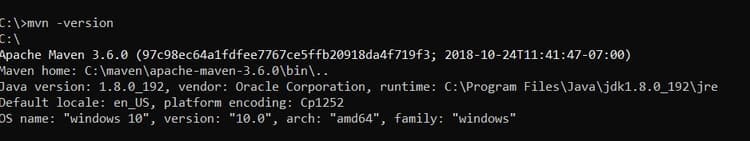 mvn -version. Debería ver la versión de mvn tal y como se muestra en la captura de pantalla siguiente