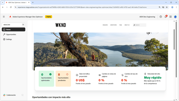 Adobe Experience Manager (AEM) Sites Optimizer es un servicio basado en la nube que analiza y mejora el rendimiento de los sitios web creados en AEM. Sites Optimizer identifica las áreas para mejorar la carga de la página, el uso de componentes y la entrega de contenido. Esta funcionalidad ayuda a mejorar el rendimiento del sitio web, a la vez que reduce los costes de mantenimiento y actualización. Gracias a Sites Optimizer, puede garantizar una experiencia en línea fluida y fiable, lo que es importante para mantener la participación y las conversiones.