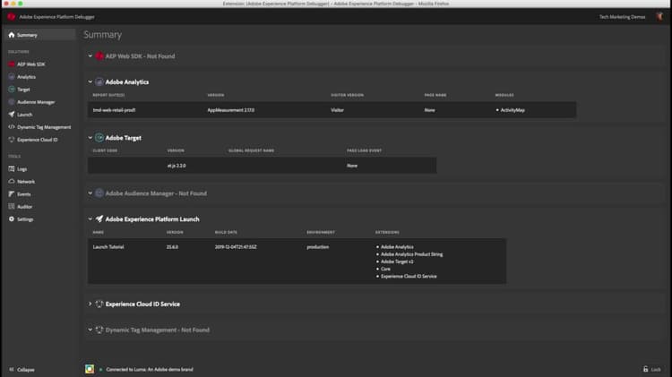 - Use la ficha Auditor en Experience Platform Debugger para probar las implementaciones.