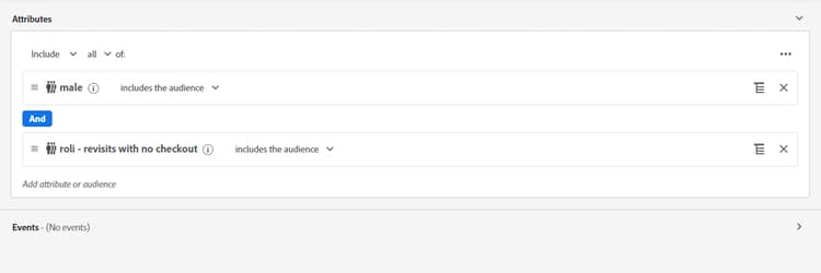 - La definición del segmento incluye una combinación de un solo evento y un evento