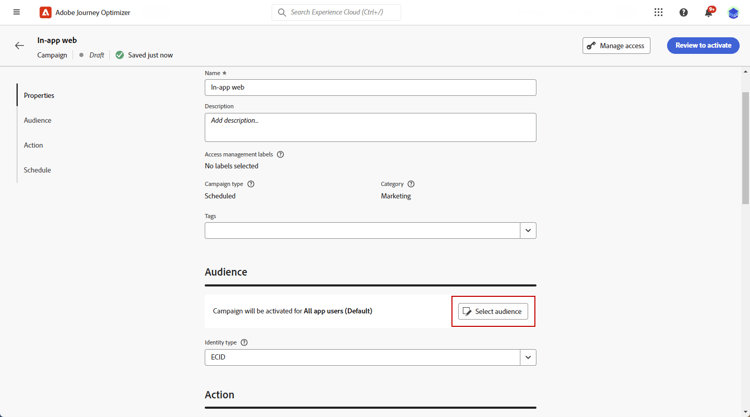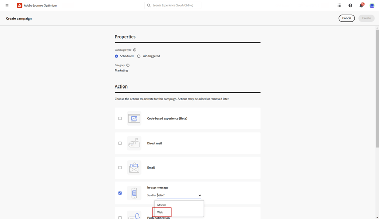 Creación de la campaña de mensajes en la aplicación web create-inapp-web-campaign