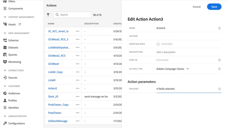 - En el campo Tipo de acción, seleccione Adobe Campaign Classic.