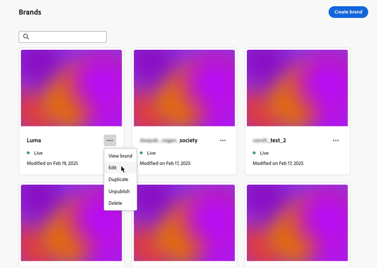 Para hacer modificaciones a tu marca publicada, haz clic en Editar marca.