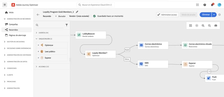 Journey Optimizer aúna en una sola aplicación las perspectivas de los clientes en tiempo real, la orquestación omnicanal moderna y la toma de decisiones inteligente. Cree experiencias de cliente personalizadas y conectadas en correos electrónicos, SMS, push, en aplicaciones, web, tarjetas de contenido y mucho más.