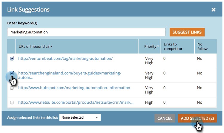 Marketo puede sugerir qué vínculos entrantes son valiosos para su optimización fuera de página.