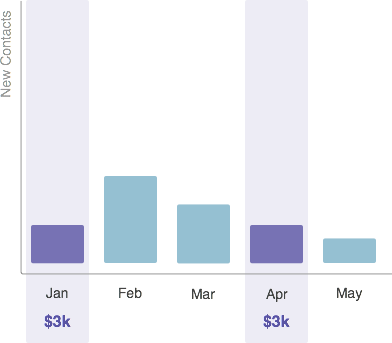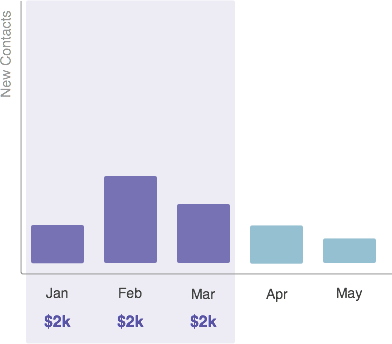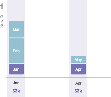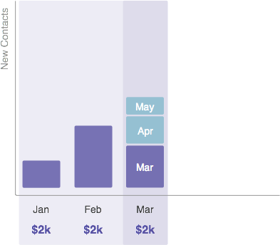 Imagine un evento, como un seminario web, que se produce en marzo. Las nuevas personas son adquiridas de antemano de la publicidad en enero y febrero. Nuevos contactos también se adquieren después del evento, cuando la gente descarga el seminario web en los meses de abril y mayo.