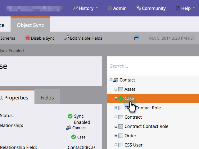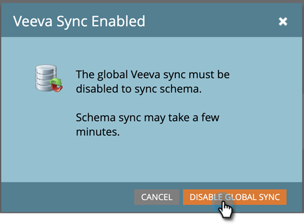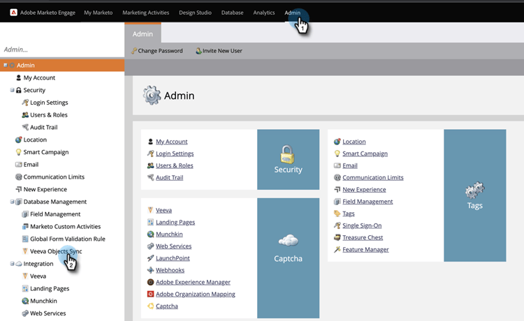 Haz clic en Administrador y luego en Sincronizar objetos de Veeva.