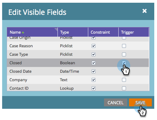 Marque las casillas que están junto a las restricciones de filtro/déclencheur que desee y haga clic en Guardar.