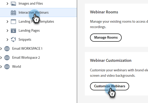 Haga clic en seminarios web interactivos y seleccione Personalizar seminarios web.