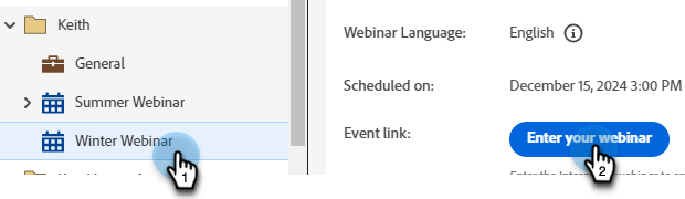 Seleccione el evento y haga clic en Participe en el seminario web.
