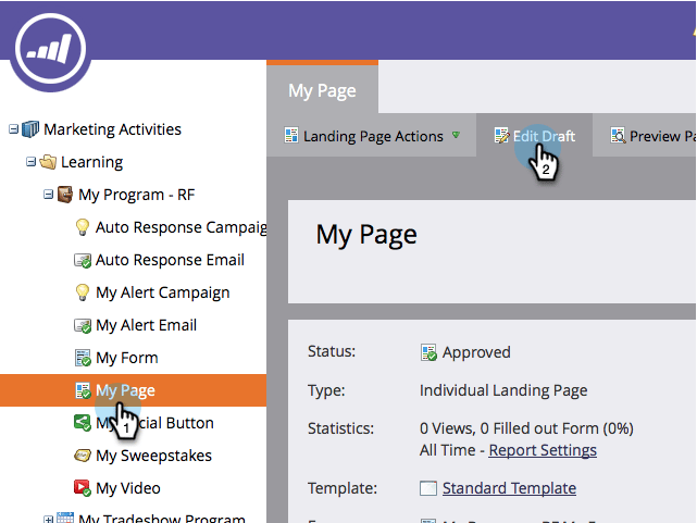 Seleccione Acciones de página de aterrizaje > Editar metaetiquetas de página.
