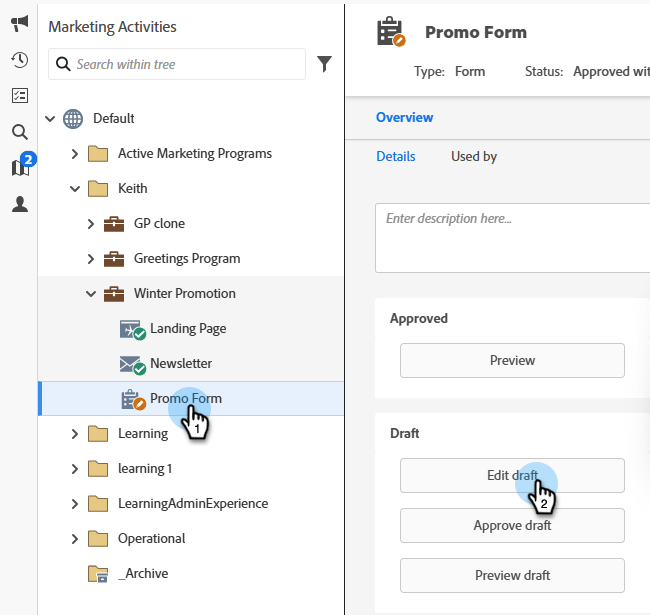 Seleccione el formulario y haga clic en Editar borrador