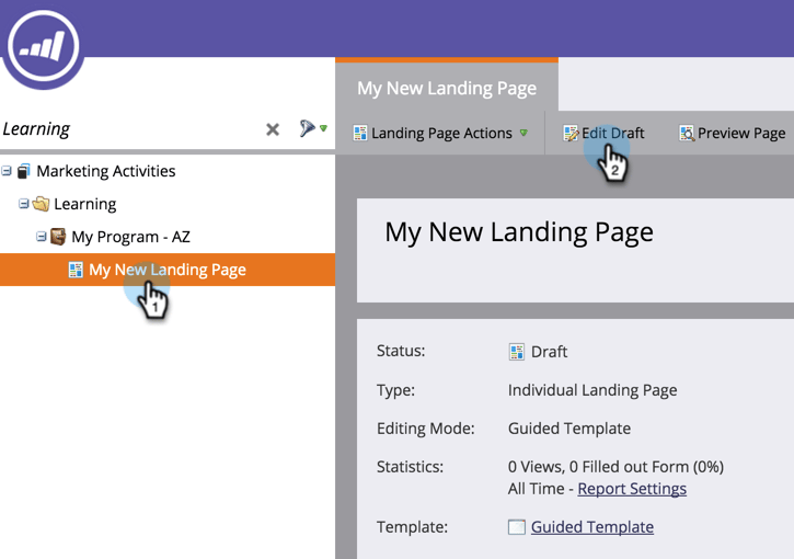 Seleccione una página de aterrizaje guiada. Haga clic en Editar borrador.