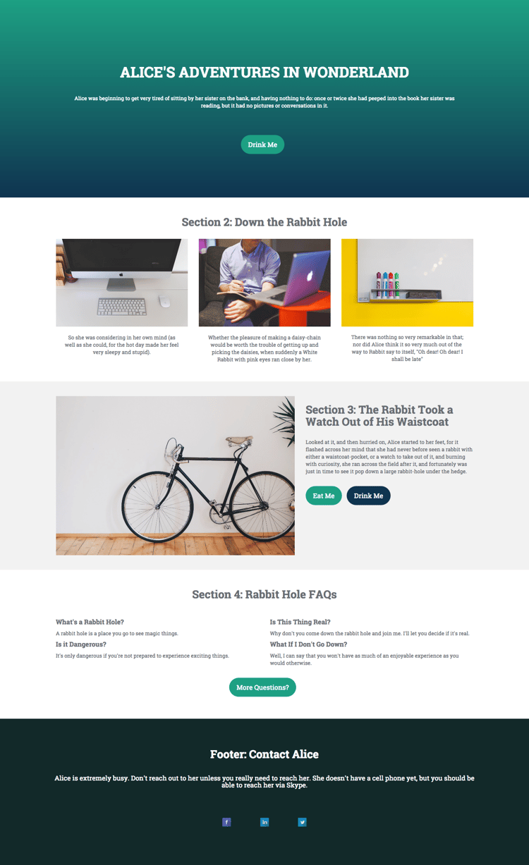 - incluye un encabezado, texto independiente y un botón.